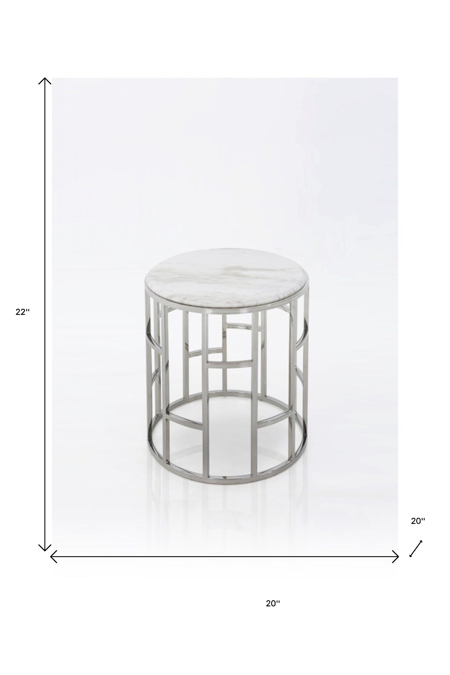 Silver & White Marble Round Geometric End Table – Modern Luxe Collection