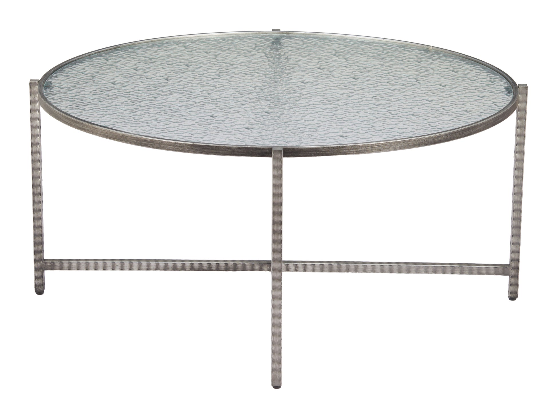 The Vetro Coffee Table – Silver brings modern elegance and refined craftsmanship into your living space. Featuring a premium rippled glass top paired with a hammered steel frame in a sleek silver finish, this table creates a light, sophisticated focal point for contemporary interiors. Its airy round silhouette keeps spaces feeling open while delivering strong visual impact.